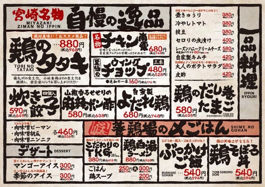 宮崎県小林市で創業六十年余続く “鶏肉一筋” の 「小林養鶏」 がプロデュースし、福岡県福岡市に本店を構える鶏料理をメインとした専門店です。宮崎県の小林養鶏本社工場から毎日直送される新鮮な鶏肉は、店舗で丁寧に仕込みを行い、今まで培ったノウハウと経験を活かし、鶏本来の美味しさを最大限に引き出した、自慢の 「鶏料理」 をご提供します。