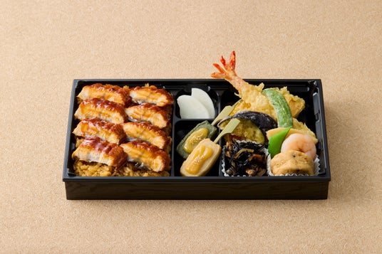 ふっくらと焼き上げた鰻と、多彩な天ぷらを詰め合わせた、食べ応えのある贅沢なお弁当です。