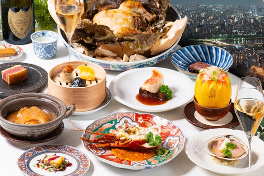 店内は72席の客席がある広々とした空間で、高さ150mという非日常空間で都心のパノラミックな眺望。高級感あふれるシックな色調に、各所に散りばめられた古伊万里などの調度品が交わるラグジュアリーな雰囲気は、誕生日や記念日などの特別な日に最適です。ソラマチの最上階という最高のロケーションで、季節の食材を使用したオリジナリティー溢れる中華料理をお楽しみいただけます。