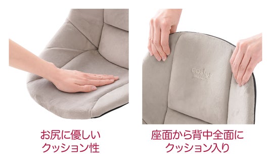 長時間の座り姿勢でも快適さを保つために、独自の弾性プレートを内蔵した特殊構造を採用。やわらかさとしっかり感を両立させたクッションが、お尻や腰への負担を軽減します。さらに、腰から背中までをしっかり支えるハイバック設計で、体を包み込むような安心感♪