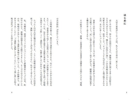 「たった1回の大切な儀式だからこそ、情報の偏りによって不利益を被ったり、後悔したりすることがあってはならない。私はそう考えています。本書が、皆さまにとって『いずれ来るその時』に役立つ1冊となり、情報不足による後悔を防ぎ、故人を心から偲び、納得のいくお別れを実現するための一助となれば幸いです。」
