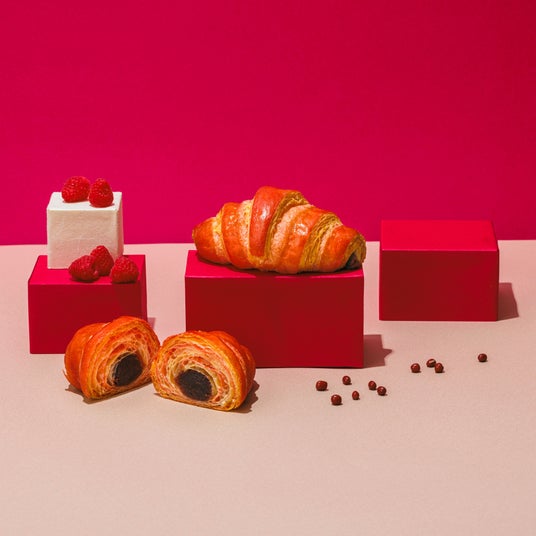 自社で炊いた「こし餡」にラズベリージャムを混ぜ合わせることで甘みのなかに酸味とラズベリーの風味が感じられる「ラズベリー風味のこしあん」に仕立て発酵バター入りのクロワッサン生地で包み焼き上げました。