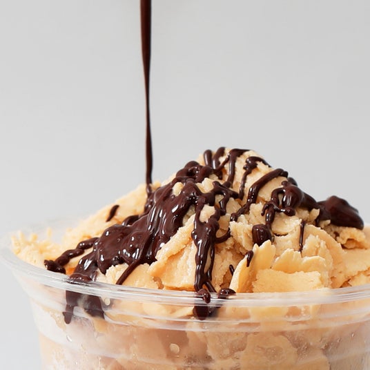 温かいカカオが氷の冷たさで瞬時に固まることで生まれる「パリパリ食感」を体験できるかき氷