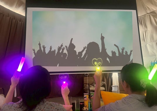 大画面で推しの映像を心ゆくまで楽しめるプロジェクターとスクリーンの無料貸出も実施。グランピングという非日常の空間で、まるで特別なシアターにいるかのような没入体験をお楽しみいただけます。