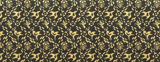 ふしぎな一夜(ふしぎないちや)19世紀後半のアーツ・アンド・クラフツ運動の影響を受けた英国の室内装飾用の布を元にしたデザインです。中世の手工芸の復興を目指すこの運動の理念を反映し、フクロウやコウモリ、猫など幸運を象徴する動物たちが葉の間に隠れた、遊び心ある織物となっています。