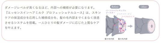 市場シェアNo.1※1ヘアケア『エッセンスインヘアミルク』より、一人ひとりの髪ダメージに応じた上質なケアを届けるヘアサロン専売品が新登場『エッセンスインヘアミルク プロフェッショナルユース』