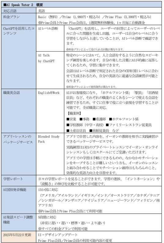 ■「AI Speak Tutor 2」特設サイト:https://www.aeonet.co.jp/lp/ai_speak_tutor_2/