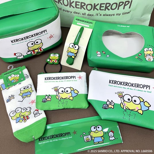 これからやってくる梅雨にピッタリな、「けろけろけろっぴ」らしい緑をテーマカラーとしたデザインアイテムに仕上げました。