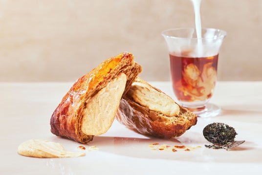 パイ生地にはフランスでつくられたバターを使い、feuilletage inverse(フィユタージュ・アンヴェルセ)という逆折り込み製法を採用。粉でバターを包む通常のパイ生地製法とは逆に、バターで粉を包むことで出来上がる、ホロホロ・サクサクとしたパイの食感をお楽しみいただけます。