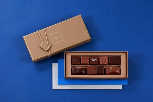 期間限定の車をかたどった「ヴォワチュール ノワール キャラメル」「ヴォワチュール レ キャラメル」、「Merci(メルシー)」の文字が描かれたボンボン ショコラを含む、ショコラ9個の詰合せ。5個、11個、16個の詰合せもご用意しています。