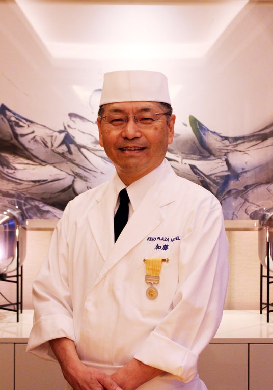 加藤 敏之は1980年に入社し、日本料理<みやま><あしび>で和食調理人として経験を積み重ね、1989年にホテル・インターコンチネンタル・ソウルの和食堂<海山(みやま)>へ派遣、帰国後、新和食<かがり>をはじめ、さまざまな和食レストラン店舗の料理長を兼任しつつ、これまでの和食調理の現場で培った卓越した技術と知識を活かし、京王プラザホテルにおける日本料理の味を統括するという重責を果たしてまいりました。また強い探究心から、安心・良好で新鮮な食材を厳選し、調理するため、日本各地へ赴き、生産者や漁業関係者とのネットワーク作りにも尽力してまいりました。