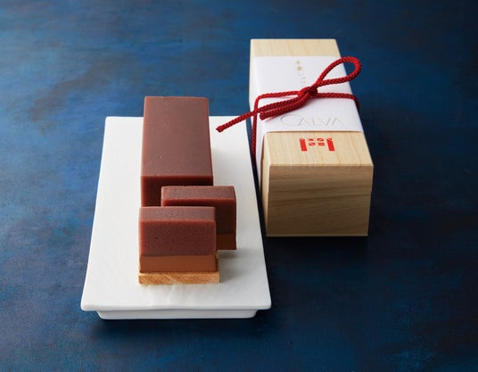 蒸し羊羹の食感にチョコレートガナッシュを合わせた和と洋の融合スウィーツ。