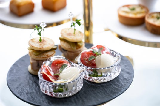 とうもろこしの濃厚なコーンスープ、インカのめざめや夏野菜を味わうキッシュ、北海道産フルーツトマトと「NEEDS」のモッツァレラチーズのカプレーゼなどのセイボリーで、北海道の大地の恵みをご満喫いただけます。