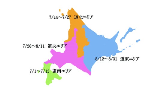 北海道4エリアのグルメが各期間で楽しめる