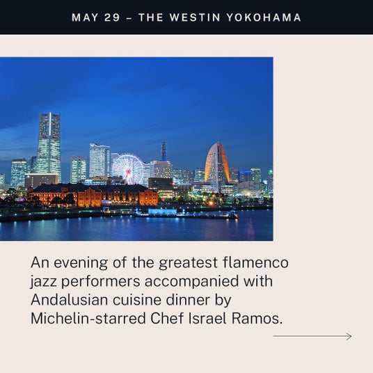 - 世界的に活躍するフラメンコ・ジャズ・アーティスト7名が、東京・横浜・鎌倉の選び抜かれた会場で公演を行い、音楽、美食、そして伝統が融合する唯一無二の体験を提供します。