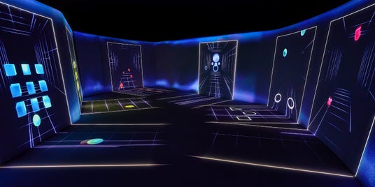 4th Field「IMMERSIVE(イマーシブ)」は、360度の映像と音に包まれる没入型インタラクティブ体験です。360度の映像プロジェクターと人感センサーが連動し、身体の動きに応じて映像と音がリアルタイムに変化します。体験は粒子状のアバターとの対話的なウオーミングアップから始まり、全11種類の中からランダムに出現する3つのゲームに挑戦いただきます。さらにフィナーレでは体験者全員で空間全体を動き回ることで、映像が変化し、その日その回限りのデジタルアートが完成します。