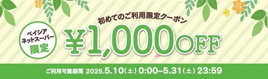 「ベイシアネットスーパー」で初めてお買い物をされるお客様限定で、1,000円OFFクーポンをプレゼントいたします。