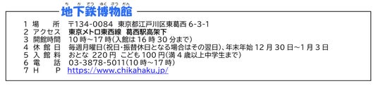 東京地下鉄株式会社(本社:東京都台東区、代表取締役社長:山村 明義、以下「東京メトロ」)は、公益財団法人メトロ文化財団(東京都千代田区、会長:奥 義光)が運営する地下鉄博物館において、2025年6月17日(火)~9月15日(月・祝)にかけて開催する特別展「地下鉄で働く駅員さん・乗務員さんのおしごと展」に協力いたします。