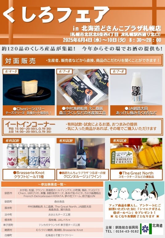 「くしろフェアin北海道どさんこプラザ札幌店」6月4日より7日間限定で開催