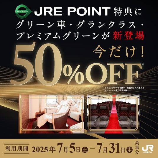 JRE POINT特典にグリーン車・グランクラス・プレミアムグリーンが新登場!~期間限定50%OFFの特別レートで乗車できる特別企画を実施します!~