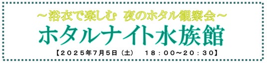 2025年7月5日(土)の閉館後、「ホタルの杜」の開催に際して、ホタルの生態についてさらに詳しく、楽しく学べるナイトイベント「ホタルナイト水族館」を開催いたします。