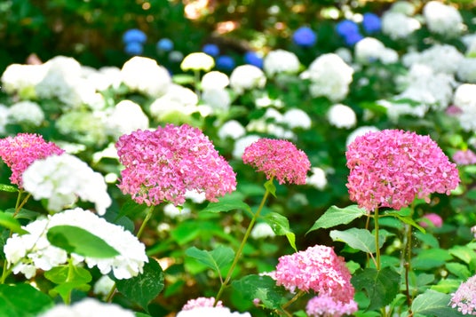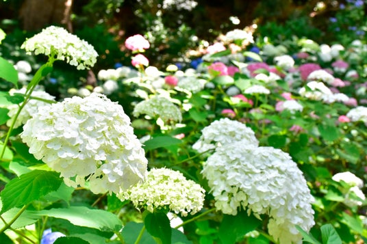 『アナベル広場』大きな花房が特徴の「アナベル」と「ピンクアナベル」約100株を楽しめる