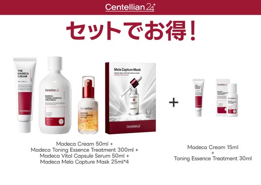 ※1 : ザ マデカクリーム50ml +マデカバイタルカプセルセラム50ml +マデカトーニングエッセンストリートメント300ml +マデカメラキャプチャーアンプルマスク(4枚入)23ml*4の4種