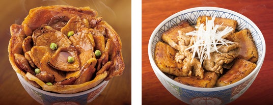 (左)豚ロース丼〈メガ〉/(右)豚バラMIX丼