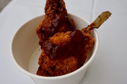 こちらは県産のシカ肉を使ったジビエ串カツ。お肉が柔らかくておいしい!