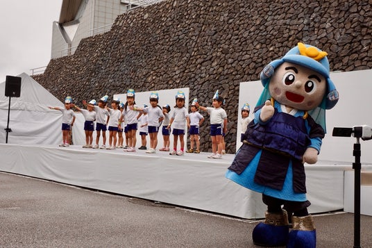 特設ステージでは開会式を皮切りに、多彩なイベントやショーが行われました。まずは、地元にある岡豊保育園の子ども達が、資料館のマスコットキャラクター・若武者もとちか君といっしょに、オリジナルソング「もとちか君とおどろう」を披露!かわいい歌声と踊りで、会場全体はほっこりとした雰囲気に包まれました。
