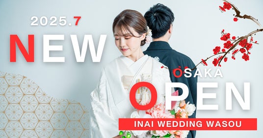 婚礼和装専門のセルフフォトスタジオ『INAI WEDDING WASOU』(運営:株式会社World map、所在地:東京都豊島区)は、2025年7月に関西初となる「INAI WEDDING WASOU 大阪店(仮)」を大阪・高槻にオープンいたします。関西圏での和装前撮り専門セルフフォトスタジオは業界初。
