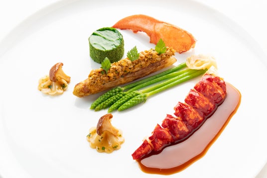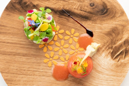 野菜ブイヨンのジュレとシャーベットが爽やかなパプリカとビーツのカクテルに始まり、様々な調理方法で各野菜の美味しさが引き出された色鮮やかな前菜へと続きます。メインには柔らかい歯ごたえの黒アワビの一品に加え、白アスパラガスと味わうオマールの料理。デザートでは果物と野菜が絶妙なハーモニーを奏でます。