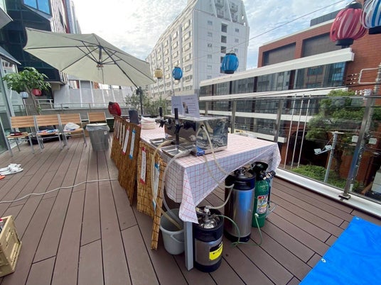 そこで弊社は、プロ仕様の氷冷式生ビールサーバーのご自宅向けレンタルサービスを開始しました。電源不要・設置簡単な氷冷式を採用しており、コンセントのない庭やベランダで使用が可能。誰でも手軽に、本格的な生ビールの味わいをその場で注いで楽しむことができます。