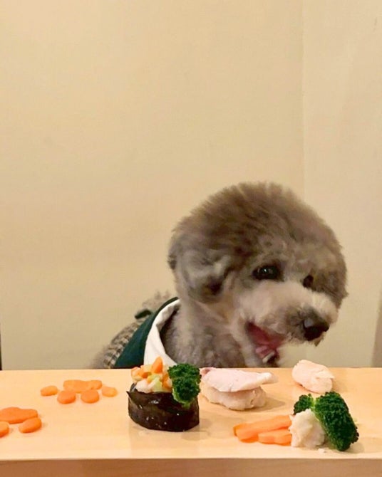 ネタは、鮮度にこだわった良質な鮮魚を使用。生でも安心してお召し上がりいただけますが、ご希望に応じてボイルをすることも可能です。シャリ部分は、マッシュポテトと鶏むね肉をやさしく混ぜ合わせて再現。見た目は人間用の鮨そのもの。思わず写真を撮りたくなる “映え鮨” に仕上げました。軍艦には、ブロッコリー・にんじん・マッシュポテトなどを彩り豊かにトッピング。味付けは一切せず、わんちゃんの健康に配慮し、素材本来の風味を大切にしています。内容量は、小型犬1匹にちょうどいいサイズ感。ご提供開始直後から、飼い主さまはもちろん、わんちゃんたちからも “おいしい” リアクションを多数いただいています。
