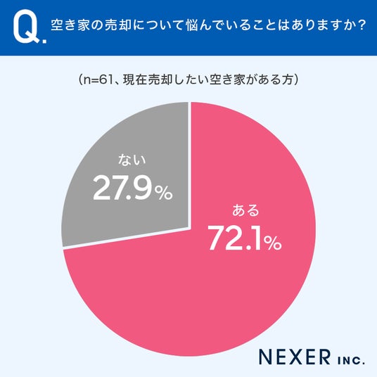 ■72.1%が空き家の売却について悩んでいることが「ある」