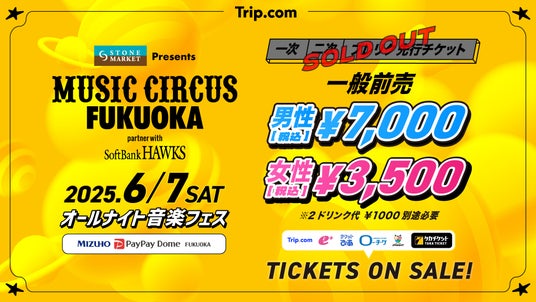株式会社MUSIC CIRCUS(東京都渋谷区)は、福岡ソフトバンクホークス株式会社(福岡市中央区)と開催する、音楽フェス「STONE MARKET Presents MUSIC CIRCUS FUKUOKA partner with SoftBank HAWKS」のフルラインナップを発表いたします。