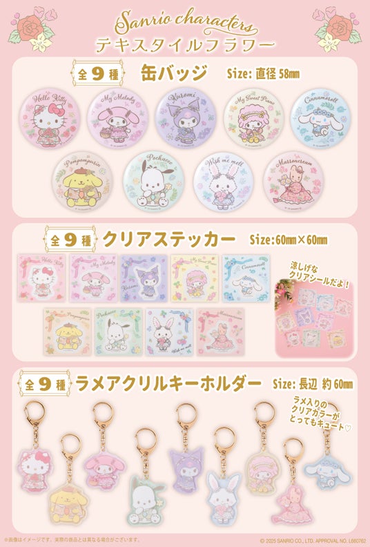 キャラクターラインナップ(全9種):ハローキティ・マイメロディ・クロミ・マイスウィートピアノ・シナモロール・ポムポムプリン・ポチャッコ・ウィッシュミーメル・マロンクリーム