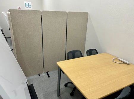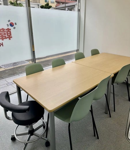 パーテーションで仕切られた教室では、プライベートレッスンやペアレッスンなど、自分のペースで韓国語学習が可能です。
