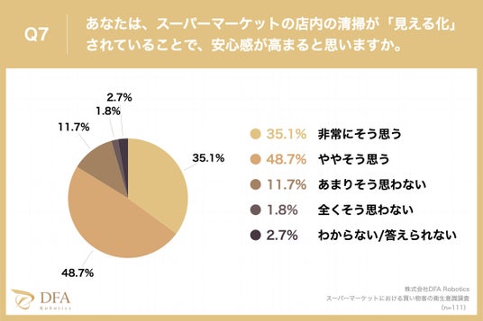 Q7:あなたは、スーパーマーケットの店内の清掃が「見える化」されていることで、安心感が高まると思いますか。