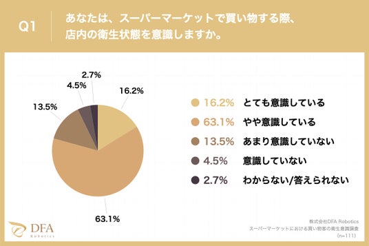 DXを推進するロボティクスソリューションカンパニーである株式会社DFA Robotics(本社:東京都港区、代表取締役社長:松林 大悟)は、週1回以上スーパーマーケットを利用する30代~60代の男女111名を対象にアンケート調査を実施し、「スーパーマーケットにおける買い物客の衛生意識調査レポート」として発表したことをお知らせいたします。
