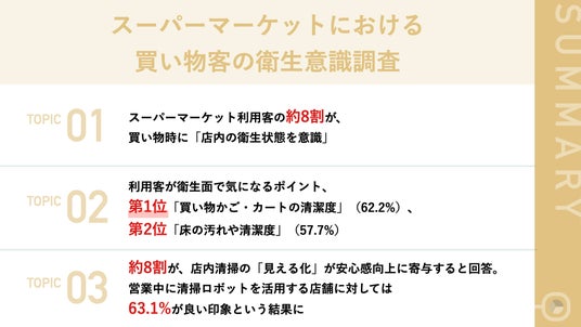 【スーパー買い物客が離れる原因、"衛生管理”が原因?】買い物客が最も気になる衛生ポイントを徹底解剖!8割以上が店舗清掃の「見える化」で安心に。