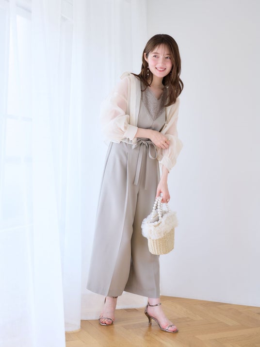 特集ページでは、上品な透け感が特徴のLEVITA糸を使用したブルゾンやカーディガン、ブランドで大人気の華やかなブーケ柄ワンピース、胸元のレースが映えるオールインワンなどシアーアイテムとワンピースを中心とした軽やかで清涼感のあるスタイリングを提案しています。