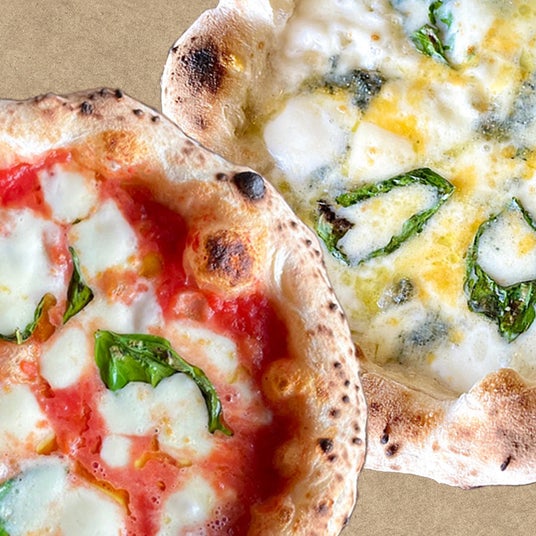 こだわり2種ナポリピッツァセット本場ナポリの薪窯で焼き上げた「マルゲリータ」「クアトロフォルマッジ」の2種セット。