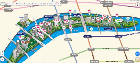 イラストマップとGPSを連動させることで、イラストマップが持つメリットとデジタルマップが持つメリットを融合。多くの方にエリアの魅力を視覚的に伝えることが可能です。本マップでは、実際の学術施設、文化施設などを再現度の高いイラストで表現し、初めて来訪・滞在する方でも迷わず散策できるマップになっています。
