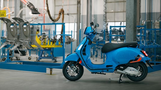 GTVが放つ個性的な感覚は、伝統とモダンそして高級感と大胆さを体現するエレガントなグリーンとホワイトをボディカラーに採用しすることによりさらに強調され、デザイン性とパフォーマンスはベスパ史上もっとも高いレベルを誇ります。