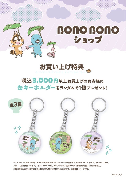 店頭購入特典として、税込1,500円以上お買い上げのお客様に「オリジナルショッパー(全1種)」を1点、税込3,000円お買い上げのお客様に「缶キーホルダー(全3種)」をランダムで1点プレゼント!