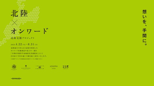 オンワード樫山のメンズブランドでは、北陸産素材を使った商品を通じて被災地を支援する「北陸×オンワード ~想いを、手間に~」プロジェクトを、4月22日(火)から8月31日(日)まで全国の店舗および公式オンラインストア「ONWARD CROSSET(オンワード・クローゼット)」にて実施しています。