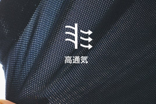 独自のメッシュ組織により、衣服内に熱がこもりにくく、快適な通気を確保します。
