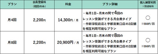 ※作新学院前店では、宇都宮駅東口店との2店舗利用が可能なプランもご用意しています。