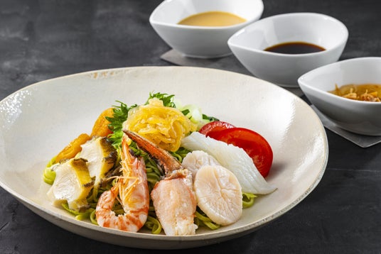 毎年好評 贅沢海鮮がゴロゴロのった「海鮮冷麺 ~3種ソース食べ比べ~」